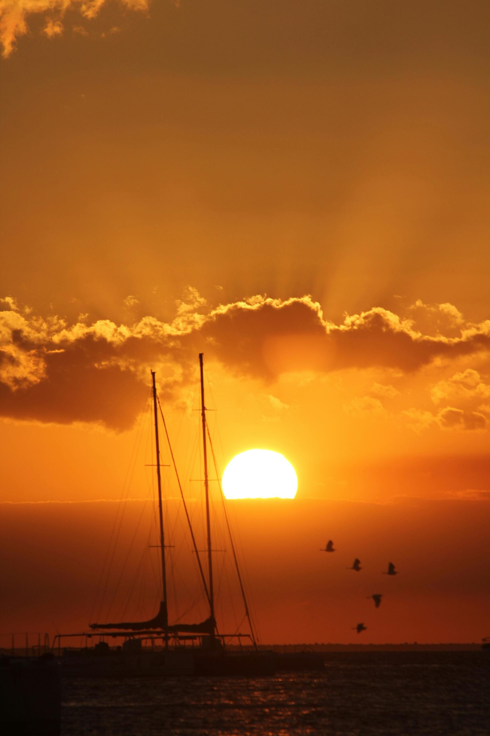 Zapierająca dech w piersiach sylwetka żaglówki na tle tętniącego życiem zachodu słońca na Dominikanie.